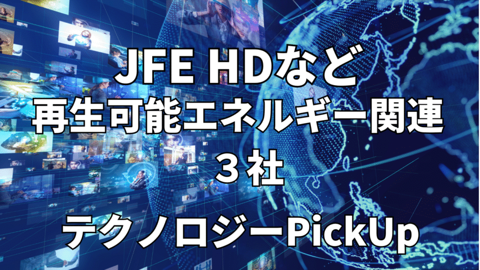今回はJFEホールディングスなど再生可能エネルギーに関する技術の有力企業3社のテクノロジーを紹介します(本記事の内容は2023年6月時点のものとなります)。